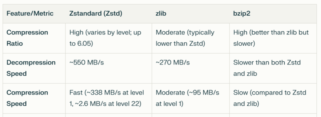 In Oracle Database 23ai, significant improvements have been made to Hybrid Columnar Compression (HCC), with the default compression method now utilizing Zstandard (Zstd) instead of the previous algorithms, zlib and bzip2. But what exactly is Zstandard, and how does it differ from zlib and bzip2?